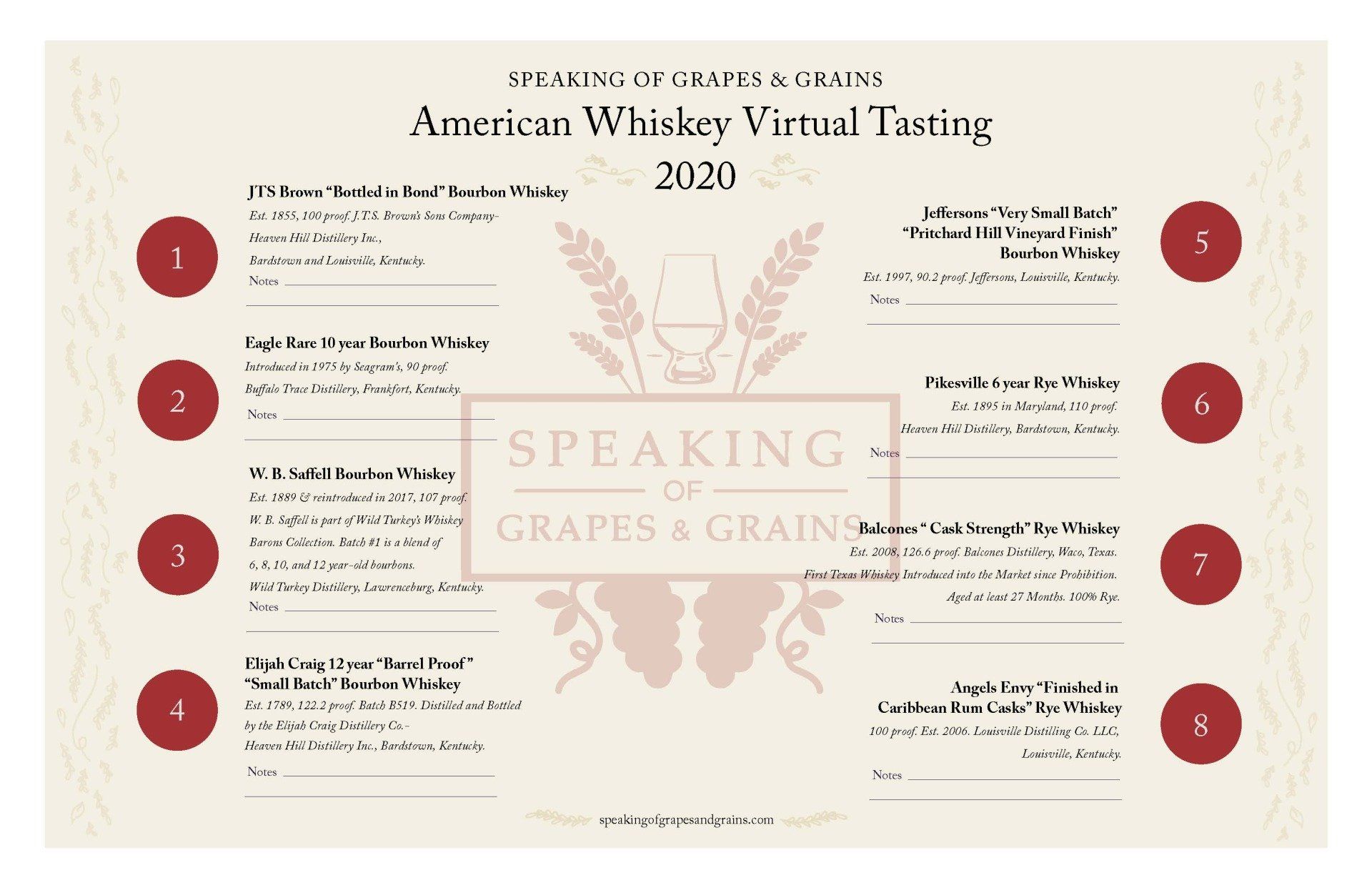 May 16 ‘20 Speaking of Grapes & Grains Virtual American whiskey tasting event.26 attended